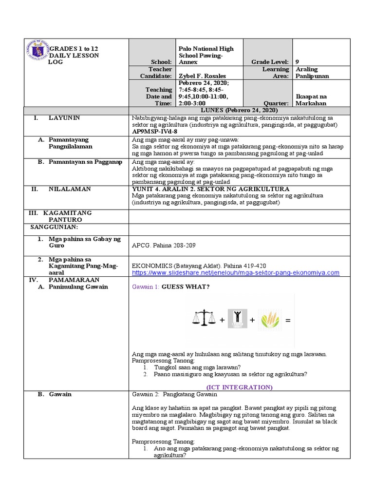 Magkakaroon tayo ng mga ideya tungkol sa mga suliranin na kinakaharap ng bawat sektor ng ating ekonomiya. Napakahalaga ng sektor ng agrikultura hindi lamang sa larangan ng ekonomiya kundi ay maging sa pang araw-araw na pangangailangan ng isang tao. Mga Sektor ng Pang Ekonomiya at Mga Patakarang Pang-Ekonomiya Nito B.