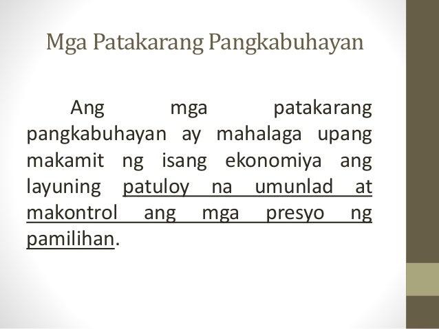 Kita mula sa buwis ito ay binubuo ng mga buwis sa personal na kita at. 2021-03-19 Ang dalawang uri ng patakarang piskal na ito ay mahalaga sa ekonomiya ng bansa. Patakarang piskal ay pagkontrol ng pamahalaan sa ekonomiya sa pamamagitan ng pagbubuwis at paggastos upang matamo ang maayos na daloy ng ekonomiya.