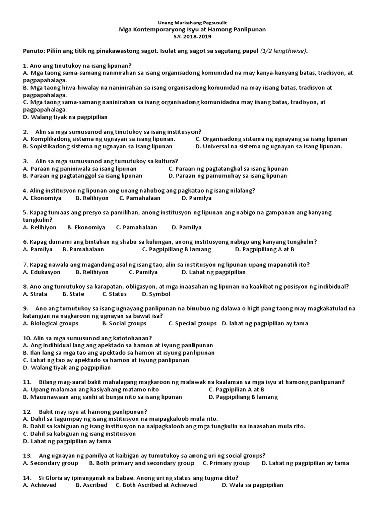 Mga Isyung Pangkapaligiran at Pang-ekonomiya 23 topics Mga Isyung Pulitikal at Pangkapayapaan 7 topics. Start studying AP 10. 2019-2020 ARALING PANLIPUNAN UNIT ASSESSMENT MAP Grade.