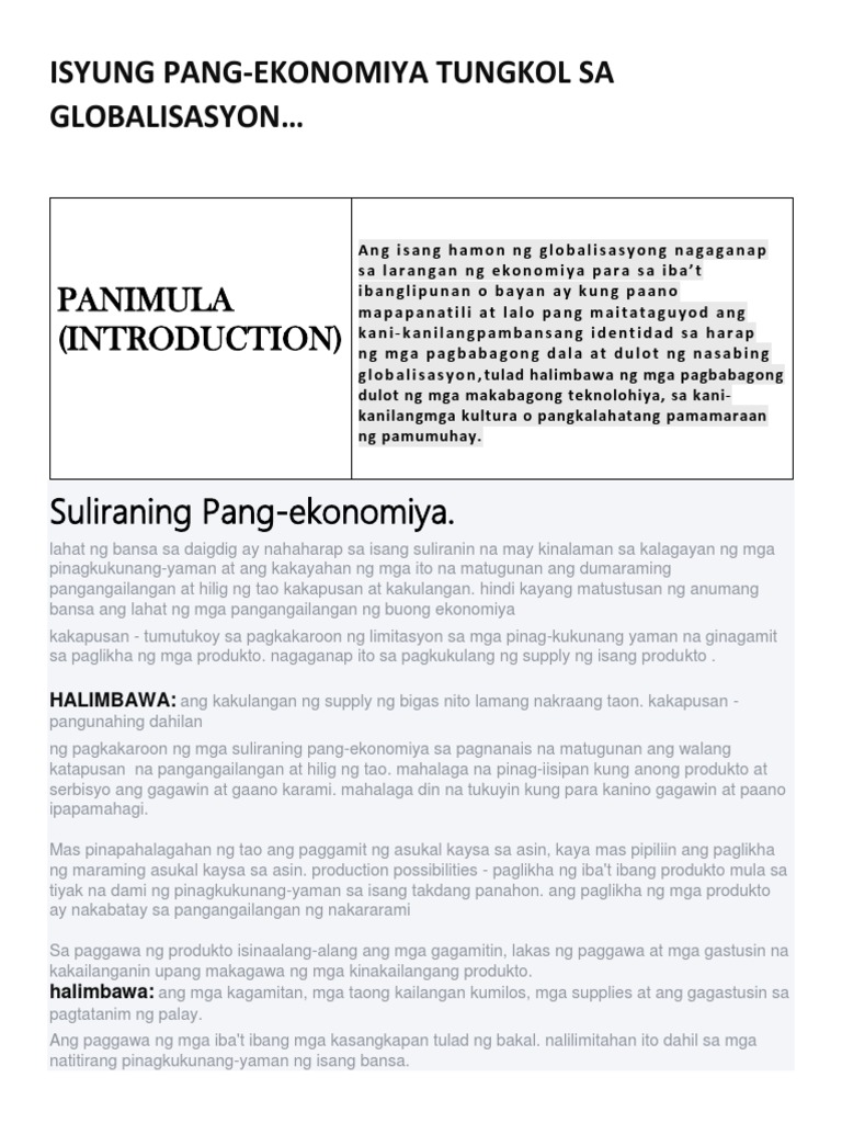 BA-OY SINIPSIP NATIONAL HIGH SCHOOL-MAIN School Year 2017-2018 SinipsipAmgaleygueyBuguias Benguet PAUNANG SALITA Sa modyul na ito ay susuriin ang mga isyung pang-ekonomiya tulad ng globalisasyon isyu sa paggawa at.