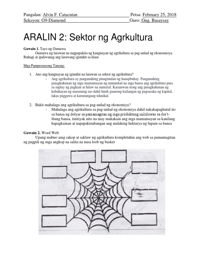 Aralin 2 Sektor Ng Agricultura Assignment Pdf
